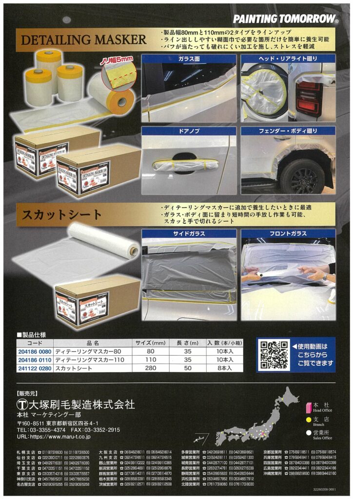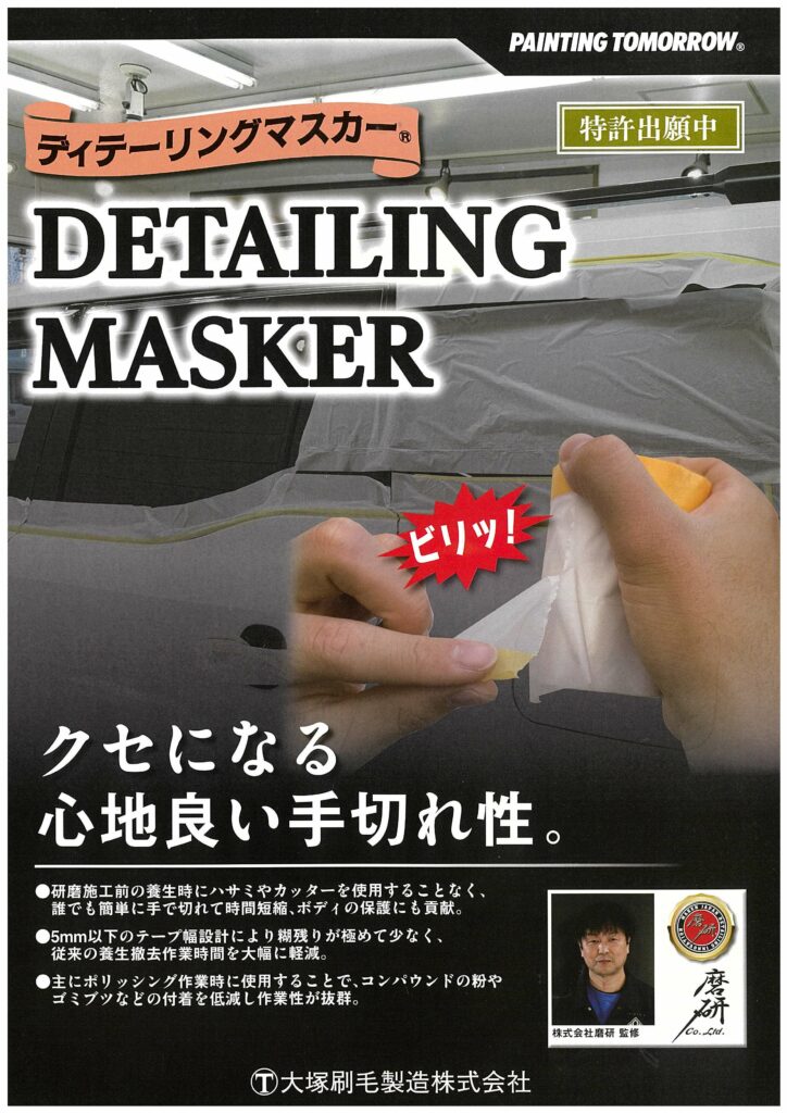 マルテー大塚 / ディテーリングマスカー 2026年2月19日2026年2月19日 e-koei クセになる心地よい手切れ性。 自動車コーティング業界、ディテーラー向けマスカーです。手切れ性のいい特殊シート(コロナ処理済み)。ラインだしし易いテープ糊幅。作業性のよいサイズ。 商品掲載ページ
